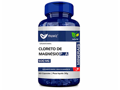 DESCRIÇÃO: Cloreto de magnésio PA – Muwiz – 500mg / 60 cápsulas. Uso Diário!
